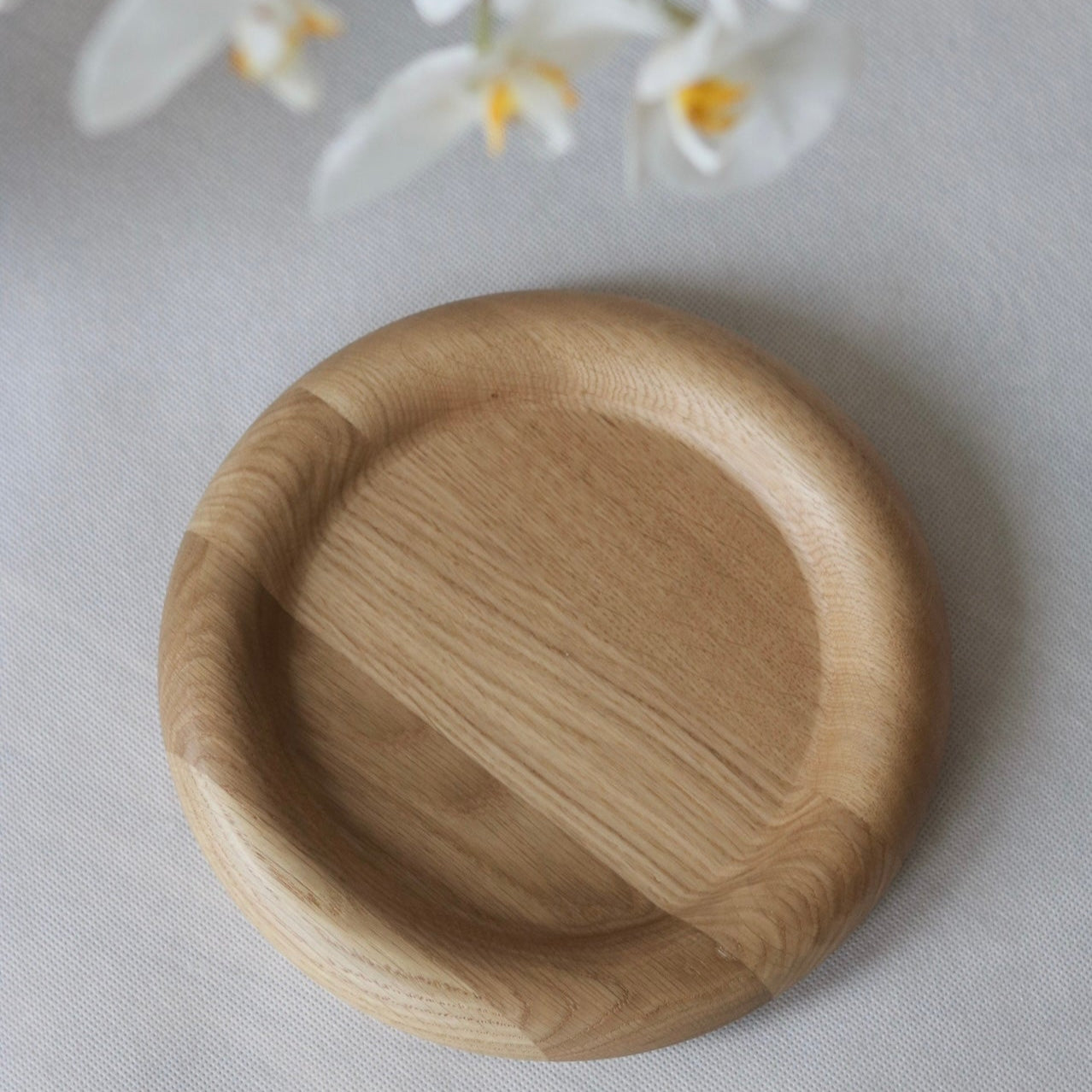 Dostępna w trzech rozmiarach – S (Ø16 cm), M (Ø25 cm) i L (Ø32 cm) – idealnie sprawdzi się jako taca do serwowania, taca na biżuterię, taca na stół czy elegancki element dekoracyjny w kuchni i salonie.